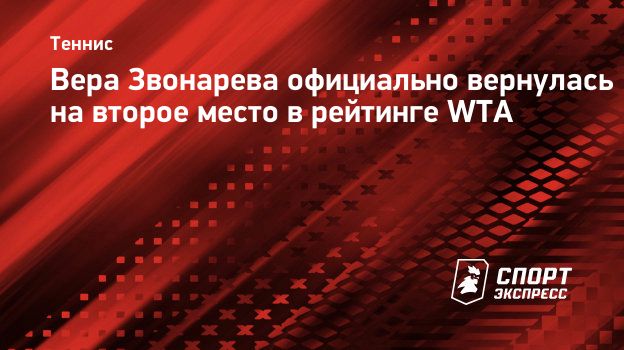 Вера Звонарева официально вернулась на второе место в рейтинге WTA