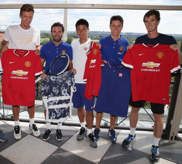 Японский теннисист Кеи Нисикори встретился с игроками "Манчестер Юнайтед", который проводит турне по США, информирует Yahoo! Sports. Он пообщался с Хуаном Матой, Андером Эррерой и Антонио Валенсией. Теннисист и футболисты обменялись сувенирами – Нисикори подарил игрокам "МЮ" ракетки и теннисные мячи, а в ответ получил форму английского клуба.