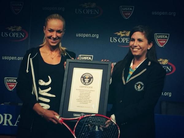 Немецкая теннисистка Сабина Лисицки внесена в Книгу рекордов Гиннесса, сообщила спортсменка в своем твиттере. Соответствующий сертификат ей был вручен накануне старта US Open. В Книгу рекордов Лисицки попала благодаря самой сильной подаче в истории женского тенниса – на турнире в Стэнфорде в конце июля мяч летел со скоростью 210,8 км/ч.