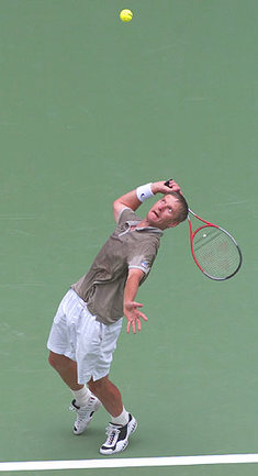 Евгений начало матча провел не слишком уверенно. Первая партия закончилась тай-брейком, причем в пользу американца, вторая тоже была упорной. Вудрафф даже подавал "на сет", но Кафельникову удалось вовремя сделать пару брейков. После этого все встало на свои места, и олимпийский чемпион уверенно довел матч до победы. |