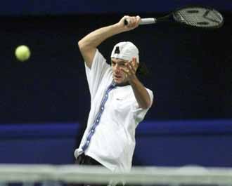 Француз Себастьян Грожан, шестая ракетка турнира, в трех сетах переиграл немца Райнера Шуттлера - 6:1, 5:7, 7:6. Именно Грожан в полуфинале может стать соперником нашего Евгения Кафельникова, если сегодня поздно вечером россиянин переиграет шведа Андреаса Винчигерру. |