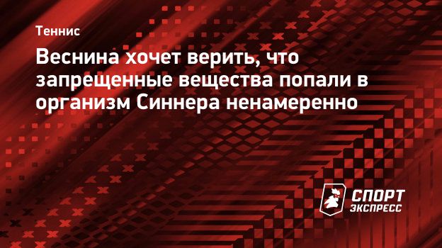 Веснина: «Хочу верить, что запрещенные вещества попали в организм Синнера ненамеренно»