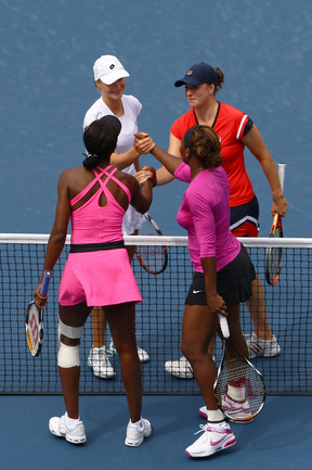 10.09.2009. В 11-й день US Open стали известны первые чемпионы: победу в миксте отпраздновали американцы Карли Галликсон и Трэвис Пэрротт. Из двух мужских четвертьфиналов был сыгран только один: Хуан Мартин Дель Потро переиграл Марина Чилича. Матч между Рафаэлем Надалем и Фернандо Гонсалесом был прерван из-за дождя. Фото - AFP, REUTERS