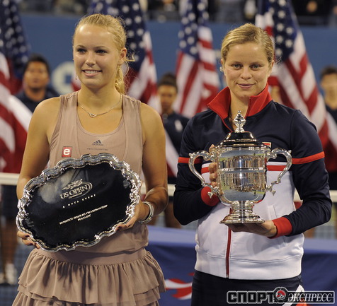 14.09.2009. Экс-первая ракетка мира Ким Клийстерс, недавно вернувшаяся в большой спорт после длительного отсутствия, стала победительницей последнего в сезоне турнира серии "Большого шлема" - US Open. В финале бельгийская теннисистка переиграла Каролин Возняцки из Дании, а до этого прошла украинку Викторию Кутузову, француженку Марион Бартоли, свою соотечественницу Кирстен Флипкенс, китаянку Ли На, а также сестер Винус и Серену Уильямс. Фото - AFP, REUTERS