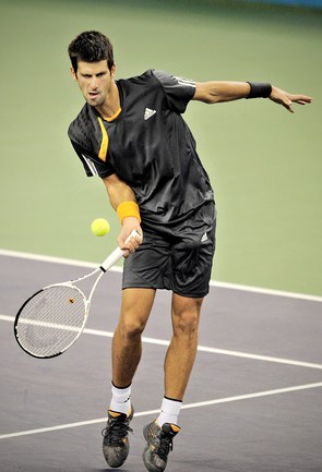 17.10.2009. Шанхай. В полуфинале турнира серии "Мастерс" россиянин Николай Давыденко в трех партиях взял верх над вторым "сеяным" Новаком Джоковичем из Сербии. В финале Давыденко предстоит встреча с грозным испанцем Рафаэлем Надалем. Фото AFP, REUTERS