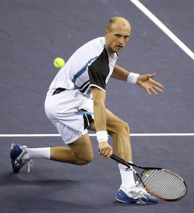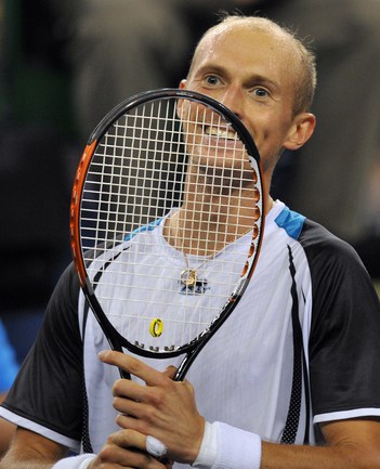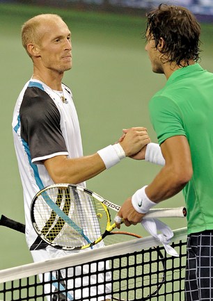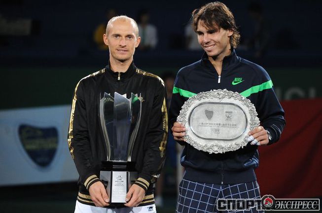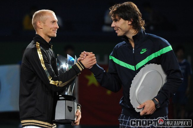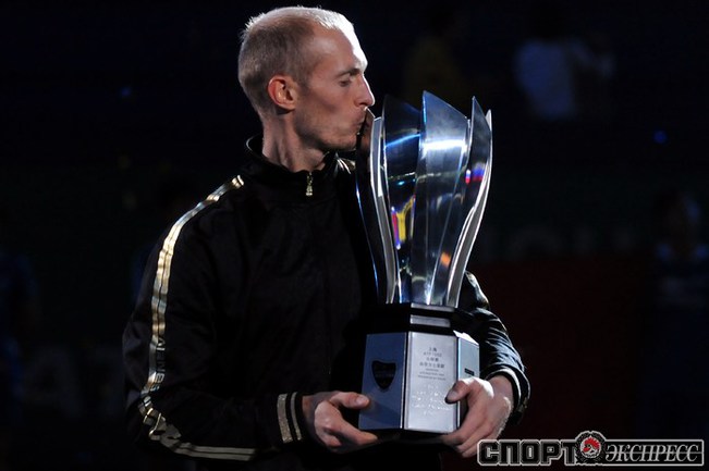 18.10.2009. Шанхай. В финале турнира серии "Мастерс" россиянин Николай ДАВЫДЕНКО в двух партиях обыграл экс-первую ракетку мира Рафаэля Надаля из Испании. Эта победа стала для Давыденко 18-й в карьере и 3-й в турнирах столь высокого уровня. Фото - REUTERS, AFP