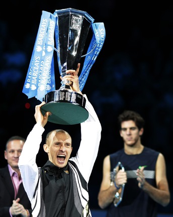 Теннис. Лондон (Великобритания). Мужской итоговый турнир года ATP World Tour Finals. Призовой фонд 5 000 000 долларов. Закрытые корты, хард.Одиночный разряд.Финал. Николай Давыденко (Россия, 6) – Дель Потро (Аргентина, 5) – 6:3, 6:4. Впервые в истории российского тенниса представитель нашей страны стал победителем итогового турнира года. Фото - REUTERS