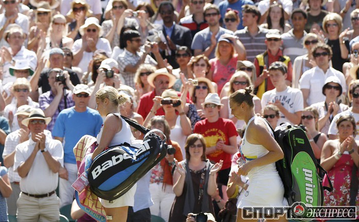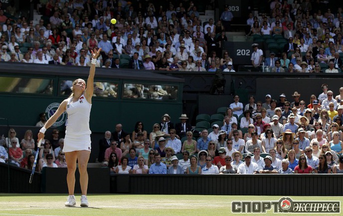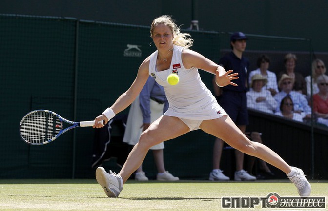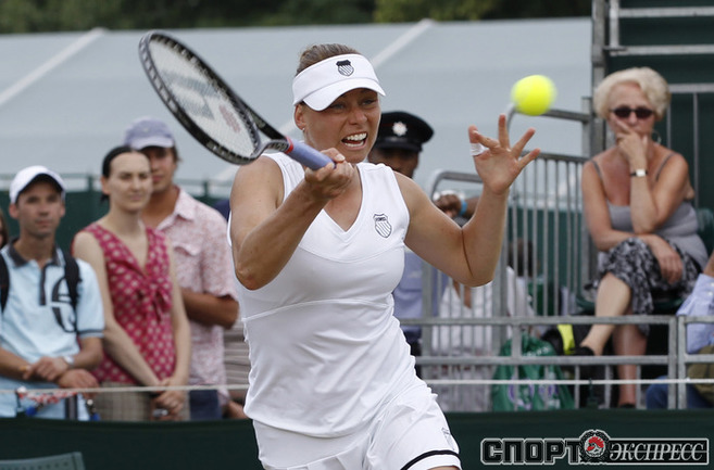 Лондон (Великобритания). Турнир "Большого шлема" Wimbledon. Призовой фонд 13 725 000 фунтов стерлингов. Открытые корты, трава. Женщины. Звонарева (Россия, 21) - Клийстерс (Бельгия, 8) - 3:6, 6:4, 6:2. Россиянка Вера Звонарева впервые в своей карьере вышла в полуфинал Уимблдона. Фото REUTERS