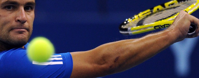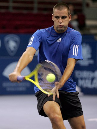 Теннис. Куала-Лумпур (Малайзия). Мужской турнир Malaysian Open. Призовой фонд 850 000 долларов. Закрытые корты, хард. Одиночный разряд. Финал. Михаил Южный (Россия, 4) – Андрей Голубев (Казахстан, 8) – 6:7 (7:9), 6:2, 7:6 (7:3). Фото AFP