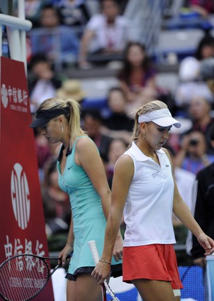 05.10.2010. Пекин (Китай). Женский турнир China Open. Одиночный разряд. Второй круг. Веснина (Россия) – Шарапова (Россия, 12) – 7:6 (7:3), 6:2. Фото AFP и REUTERS