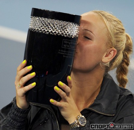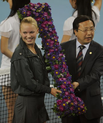 07.10.2010. Пекин. Теннис. Женский турнир China Open. Одиночный разряд. Третий круг. Возняцки (Дания, 1) – Квитова (Чехия) – 6:3, 6:2. Благодаря этой победе Каролин Возняцки обеспечила себе попадание на вершину рейтинга WTA: в понедельник, 11 октября она станет новой первой ракеткой мира. Фото AFP