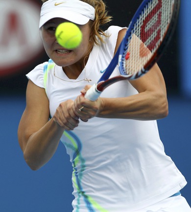 В стартовом матче на Открытом чемпионате Австралии Мария Шарапова переиграла Тамарин Танасугарн со счетом 6:3, 6:1. Николай Давыденко в первом круге проиграл немцу Флориану Майеру. Евгения Родина обыграла австралийку Оливию Роговска. Фото REUTERS