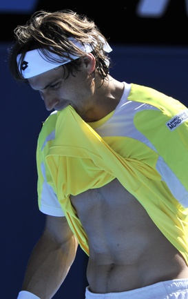 Теннис. Мельбурн. Турнир "Большого шлема" Australian Open. Мужчины. Четвертый круг. Надаль (Испания, 1) - Чилич (Хорватия, 15) - 6:2, 6:4, 6:3. Феррер (Испания, 7) - Раонич (Канада) - 4:6, 6:2, 6:3, 6:4. В четвертьфинале Давид Феррер встретится с Рафаэлем Надалем. Фото AFP