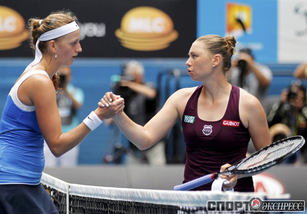 Мельбурн (Австралия). Турнир "Большого шлема" Australian Open. Общий призовой фонд 25 000 000 австралийских долларов. Открытые корты, хард. Женщины. Одиночный разряд. Четвертьфинал. Звонарева (Россия, 2) - Квитова (Чехия, 25) - 6:2, 6:4. Вера Звонарева обыграла Петру Квитову (6:2, 6:4) и во второй раз в карьере вышла в полуфинал Открытого чемпионата Австралии. Фото REUTERS