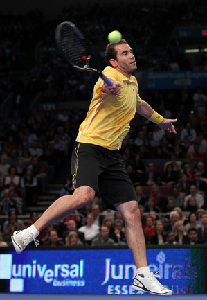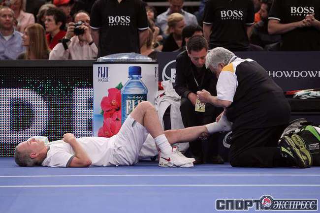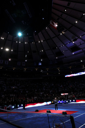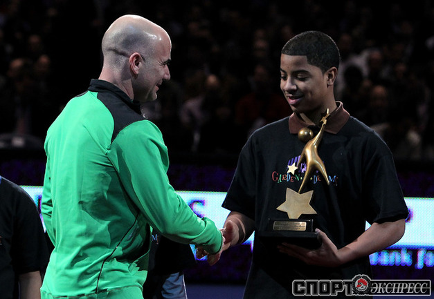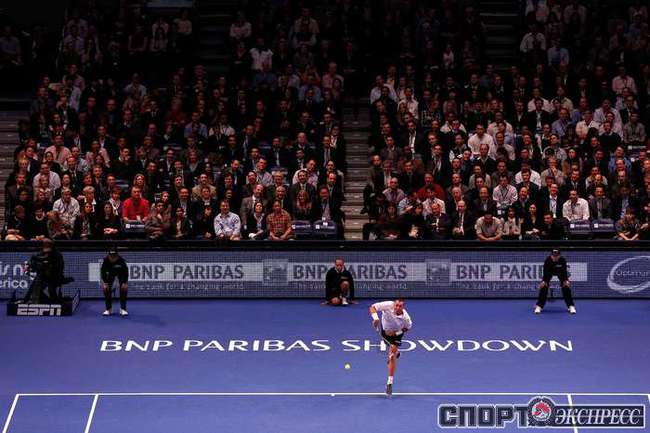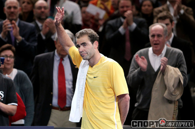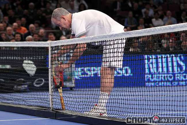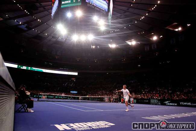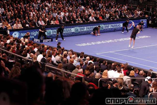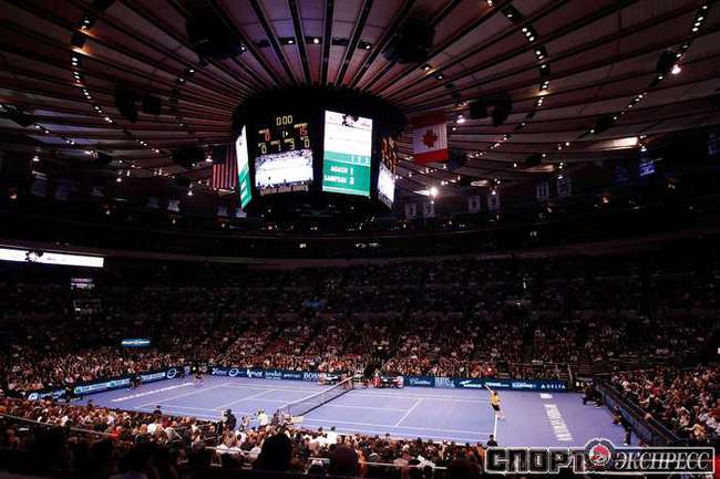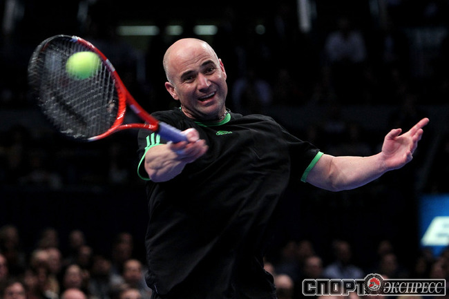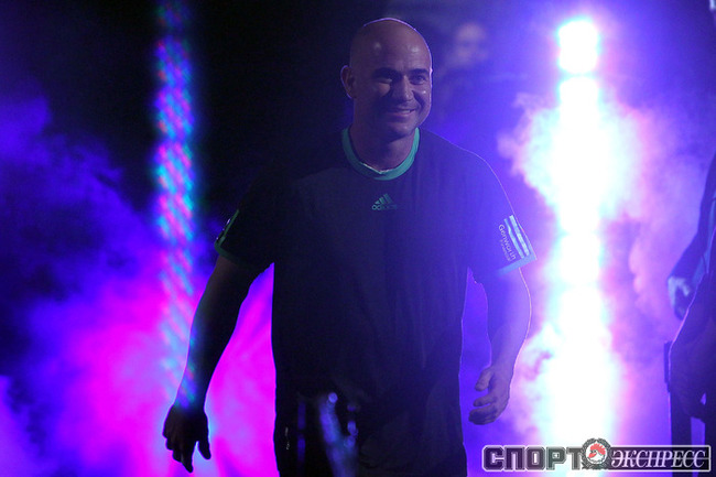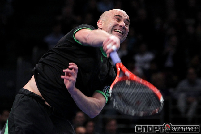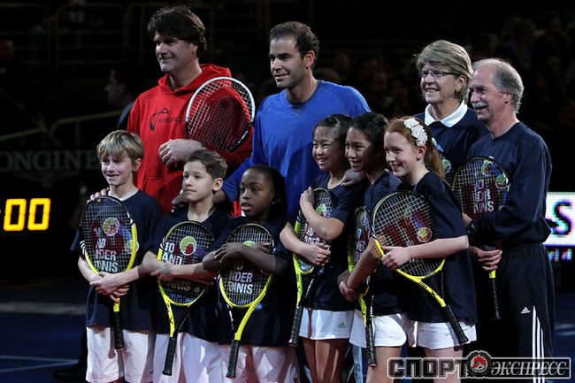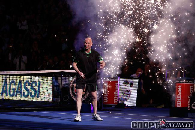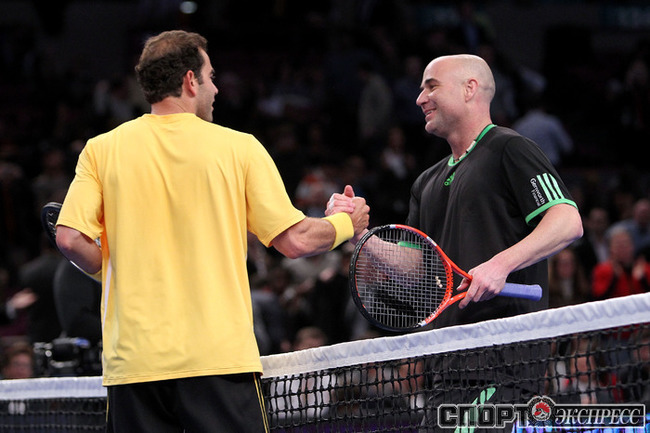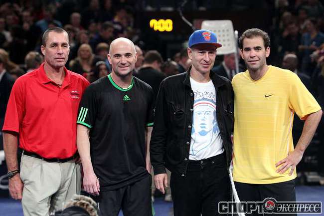 Перед турниром BNP Paribas Open в Медисон-сквер-гарден прошел матч с участием звезд тенниса. Пит Сампрас - Андре Агасси - 6:3, 7:5. Джон Макинрой - Иван Лендл - 6:3, отказ. Фото AFP