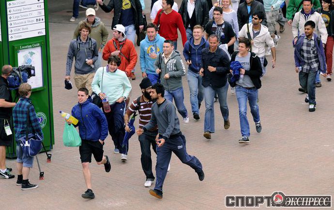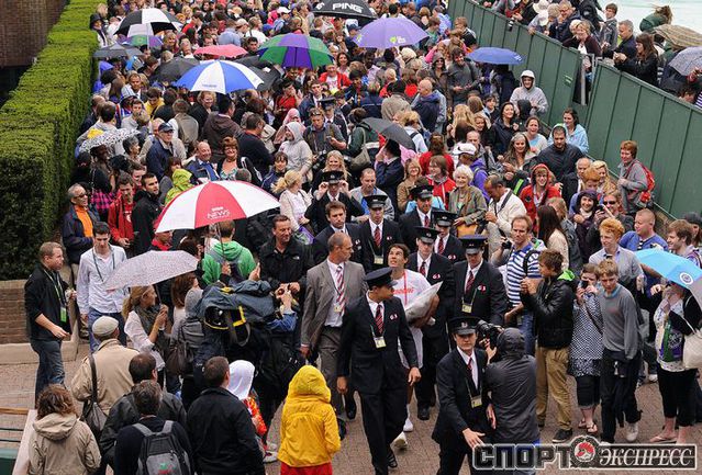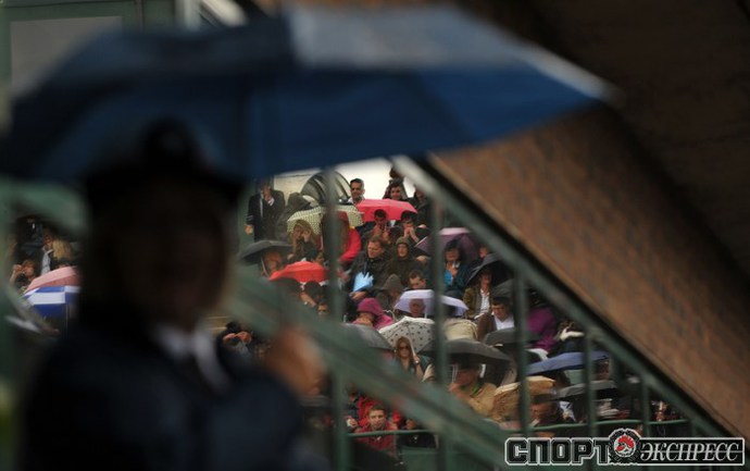 Лондон (Великобритания). Турнир "Большого шлема" Wimbledon. Общий призовой фонд 14 600 000 фунтов стерлингов. Открытые корты, трава. Традиционный лондонский дождь мещает проведению матчей, но не отпугивает многочисленных зрителей турнира. Фото AFP