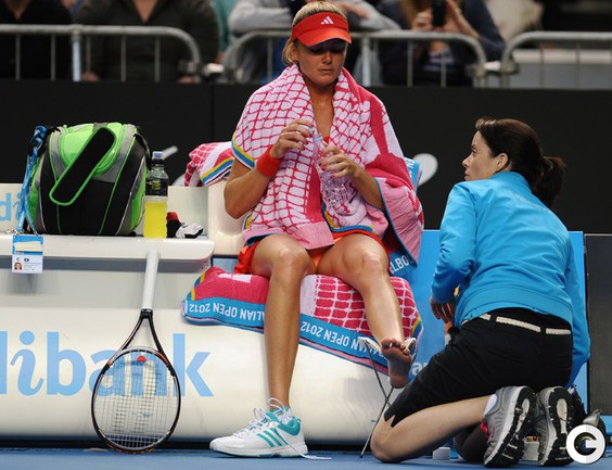 20 января 2012 года. Теннис. Мельбурн. Турнир "Большого шлема" Australian Open. Женщины. Одиночный разряд. Третий круг. Клийстерс (Бельгия, 11) - Хантухова (Словакия, 20) - 6:3, 6:2. Бенешова (Чехия) - БРАТЧИКОВА (Россия) - 6:1, 6:3. Возняцки (Дания, 1) - Никулеску (Румыния, 31) - 6:2, 6:2. Янкович (Сербия, 13) - Макхэйл (США) - 6:2, 6:0. Гергес (Германия, 22) - Опранди (Италия) - 3:6, 6:3, 6:1. Азаренко (Белоруссия, 3) - Бартель (Германия) - 6:2, 6:4. Фото AFP