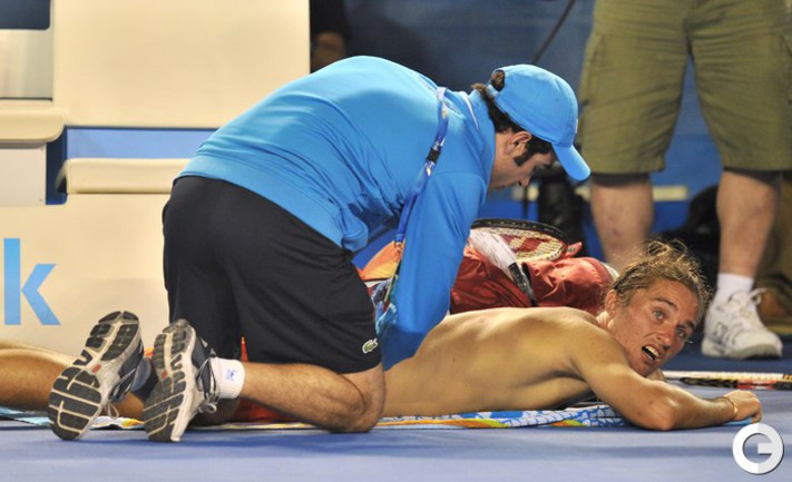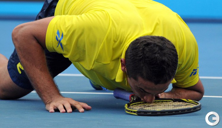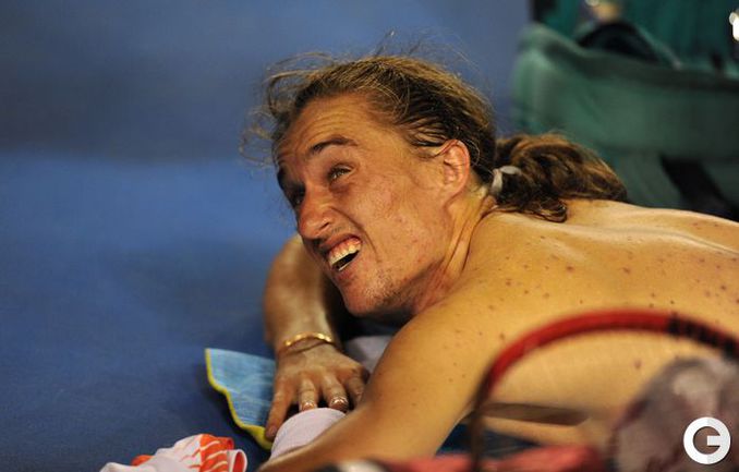 20 января 2012 года. Теннис. Мельбурн. Турнир "Большого шлема" Australian Open. Мужчины. Одиночный разряд. Третий круг. Б.Томич (Австралия) - Долгополов (Украина, 13) - 4:6, 7:6 (7:5), 7:6 (8:6), 2:6, 6:3. В четвертом круг австралиец сыграет с Роджером Федерером. Ф. Лопес (Испания, 18) - Иснер (США, 16) - 6:3, 6:7 (3:7), 6:4, 6:7 (0:7), 6:1. Дель Потро (Аргентина, 11) - Лу Еньсунь (Тайвань) - 6:2, 6:3, 6:0. Кольшрайбер (Германия) - Фалья (Колумбия) - 6:3, 6:2, 7:6 (7:3). Бердых (Чехия, 7) - Андерсон (ЮАР, 30) - 7:6 (7:5), 7:6 (7:1), 6:1. Альмагро (Испания, 10) - Вавринка (Швейцария, 21) - 7:6, 6:2, 6:4. Фото AFP