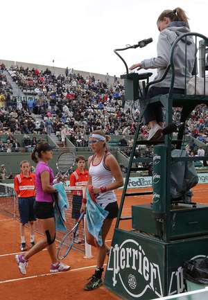 Теннис. Париж. Roland Garros. Мужчины. Одиночный разряд. Четвертый круг. Феррер (Испания, 6) - Гранольерс (Испания, 20) - 6:3, 6:2, 6:0. Дель Потро (Аргентина, 9) - Бердых (Чехия, 7) - 7:6 (8:6), 1:6, 6:3, 7:5. Тсонга (Франция, 5) - Вавринка (Швейцария, 18) - 6:4, 7:6 (8:6), 3:6, 3:6, 6:4. Альмагро (Испания, 12) - Типсаревич (Сербия, 8) - 6:4, 6:4, 6:4. Женщины. Шведова (Казахстан) - На Ли (Китай, 7) - 3:6, 6:2, 6:0. ШАРАПОВА (Россия, 2) - Закопалова (Чехия) - 6:4, 6:7 (5:7), 6:2. В четвертьфинале Мария Шарапова сыграет с победительницей матча между голландкой Арантой Рус и Кайи Канепи из Эстонии. Фото AFP
