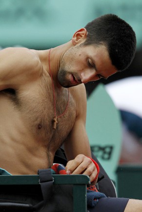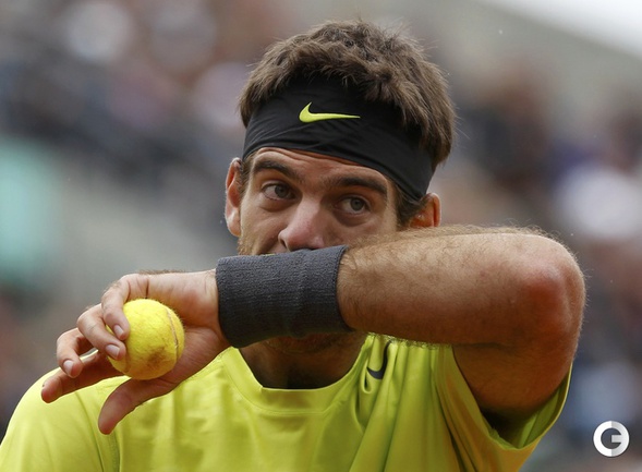 Теннис. Париж. Roland Garros. Мужчины. Одиночный разряд. Четвертьфинал. Федерер (Швейцария, 3) - Дель Потро (Аргентина, 9) - 3:6, 6:7 (4:7), 6:2, 6:0, 6:3. Джокович (Сербия, 1) - Тсонга (Франция, 5) - 6:1, 5:7, 5:7, 7:6 (8:6), 6:1. Фото REUTERS