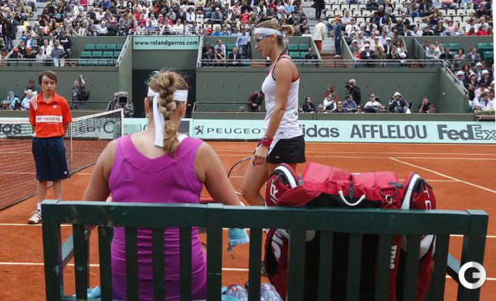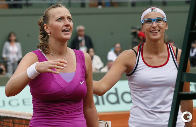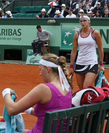 Теннис. Париж. Roland Garros. Женщины. Одиночный разряд. Четвертьфинал. ШАРАПОВА (Россия) - Канепи (Эстония) - 6:2, 6:3. Квитова (Чехия, 4) - Шведова (Казахстан) - 3:6, 6:2, 6:4. В полуфинале Петра Квитова сыграет с Марией Шараповой. Фото AFP