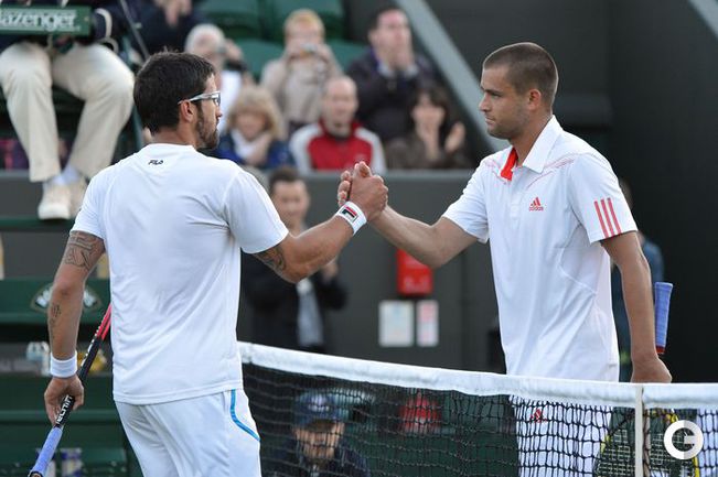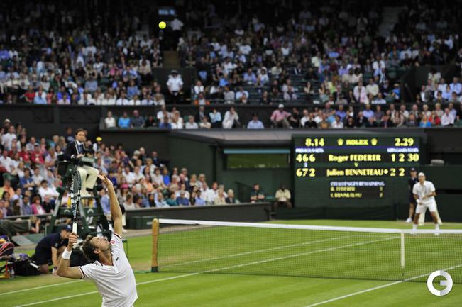 Теннис. Лондон. Wimbledon. Открытые корты, трава. Мужчины. Одиночный разряд. Третий круг. Федерер (Швейцария, 3) - Беннето (Франция, 29) - 4:6, 6:7 (3:7), 6:2, 7:6 (8:6), 6:1. Ф.Майер (Германия, 31) - Янович (Польша) - 7:6 (7:5), 3:6, 2:6, 6:3, 7:5. ЮЖНЫЙ (Россия, 26) - Типсаревич (Сербия, 8) - 6:3, 6:4, 3:6, 6:3. Истомин (Узбекистан) — Фалья (Колумбия) — 6:3, 6:4, 3:6, 7:6 (7:5). Гаске (Франция, 18) — Альмагро (Испания, 12) — 6:3, 6:4, 6:4. Фото AFP