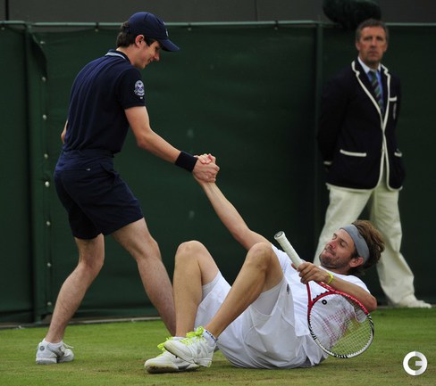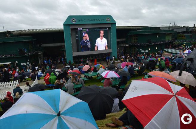 Теннис. Лондон. Wimbledon. Одиночный разряд. Четвертый круг. Маррэй (Великобритания, 4) - Чилич (Хорватия, 16) — 7:5, 6:2, 6:3. Майер (Германия, 31) - Гаске (Франция, 18) — 6:3, 6:1, 3:6, 6:2. С. Уильямс (США, 6) - Квитова (Чехия, 4) - 6:3, 7:5. Тсонга (Франция, 5) - Фиш (США, 10) - 4:6, 7:6 (7:4), 6:4, 6:4. Феррер (Испания, 7) - Дель Потро (Аргентина, 9) - 6:3, 6:2, 6:3. Фото AFP