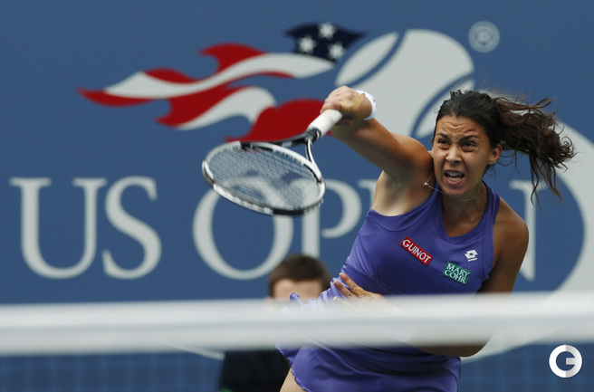 Теннис. Нью-Йорк (США). Турнир "Большого шлема" US Open. Призовой фонд 24 054 000 долларов. Женщины. Одиночный разряд. Мария Шарапова - Марион Бартали - 3:6, 6:3, 6:4. В полуфинале россиянка встретится с Викторией Азаренко. Фото REUTERS