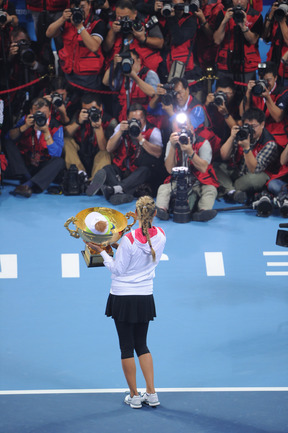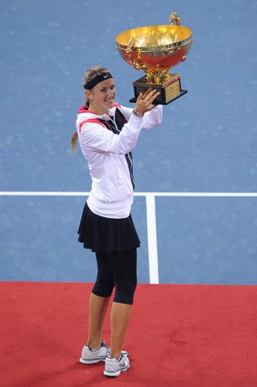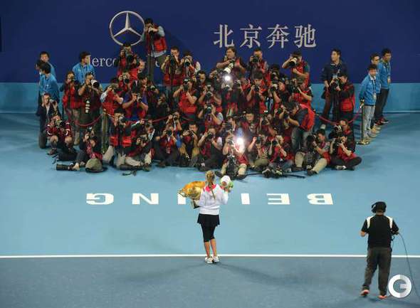 Теннис. Пекин. Женский турнир China Open. Призовой фонд 4 500 000 долларов. Открытые корты, хард. Одиночный разряд. Финал. Азаренко (Белоруссия, 1) - ШАРАПОВА (Россия, 2) - 6:3, 6:1. Фото AFP