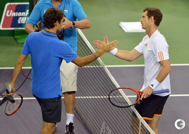 Теннис. Шанхай. Мужской турнир Shanghai Rolex Masters – 2012. Призовой фонд 3 240 000 долларов. Открытые корты, хард. Одиночный разряд. Полуфиналы. Джокович (Сербия, 2) – Бердых (Чехия, 4) - 6:3, 6:4. Маррэй (Великобритания, 3) - Федерер (Швейцария, 1) - 6:4, 6:4. Фото AFP