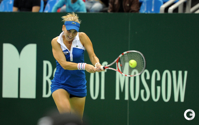 Теннис. Москва. "Кубок Кремля"–2012. Закрытые корты, хард. Одиночный разряд. Первый круг. КИРИЛЕНКО (Россия, 7) - ВЕСНИНА (Россия, WC) - 7:5, 6:1. Второй круг. Арвидссон (Швеция) - Бартоли (Франция, 2) - 6:3, 6:0. Во втором круге София Арвидссон сыграет с победительницей матча Мария Кириленко (Россия) - Ярослава Шведова (Казахстан). Эдуард Роже-Васслен — Евгений Донской - 6:4, 4:6, 6:3. Возняцки (Дания, 3) - У. Радванска (Польша) - 6:1, 6:3. Пары Надежда Петрова/Мария Кириленко - Ли-Уотер Линдсей/Мултон-Леви Меган - 6:1, 6:3. Фото - Никита УСПЕНСКИЙ, "СЭ"