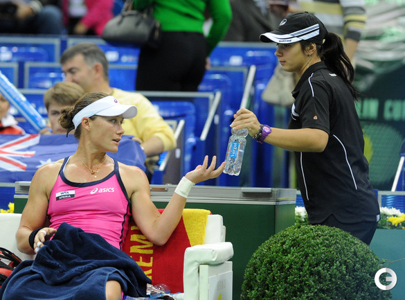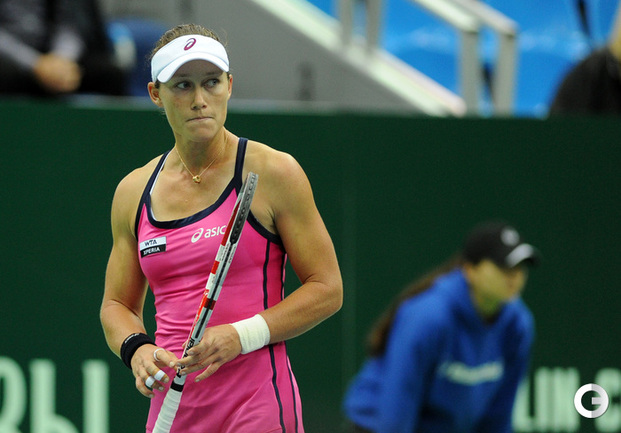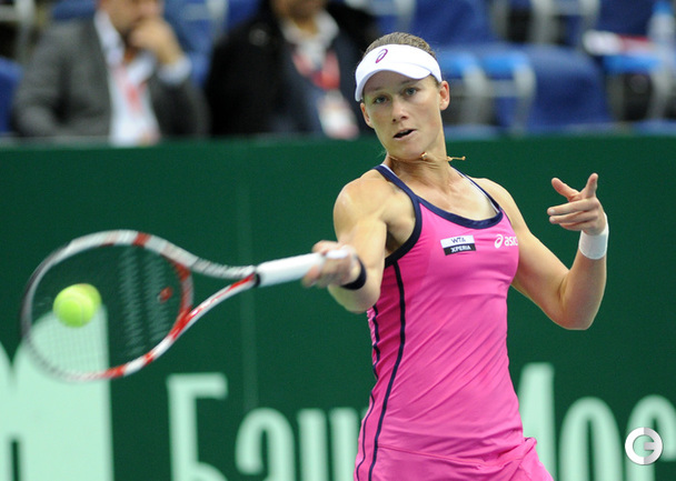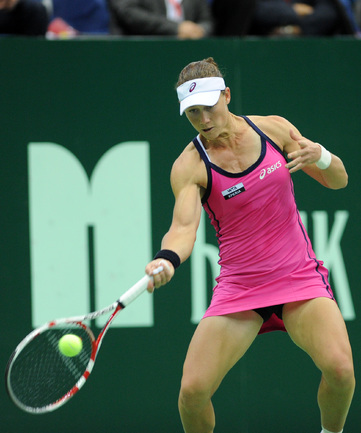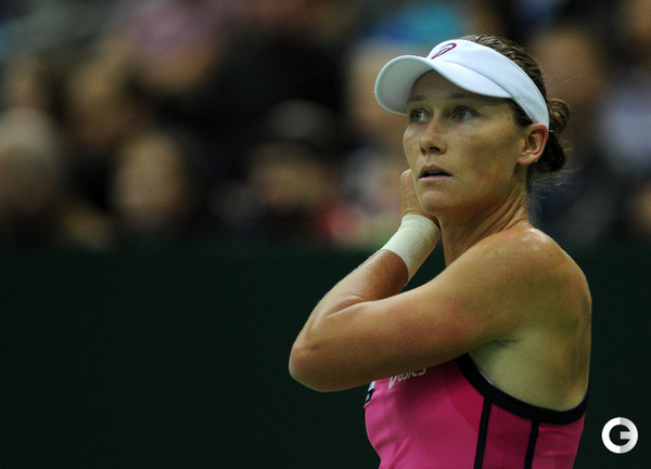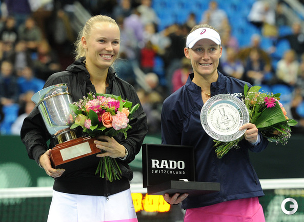 Москва. Женский турнир "Кубок Кремля"- 2012. Призовой фонд 721 000 долларов. Закрытые корты, хард. Одиночный разряд. Финал. Возняцки (Дания, 3/WC) - Стосур (Австралия, 1) - 6:2, 4:6, 7:5. Третья "сеяная" в женском одиночном разряде "Кубка Кремля"-2012 Каролин Возняцки из Дании переиграла в трех сетах австралийку Саманту Стосур в финальном матче турнира. Фото - Никита УСПЕНСКИЙ, "СЭ"