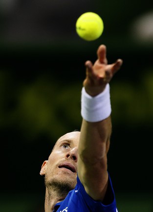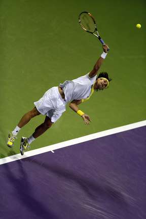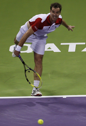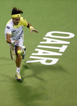 Теннис. Доха. Мужской турнир Qatar ExxonMobil Open. Призовой фонд 1 054 270 долларов. Открытые корты, хард. Одиночный разряд. Полуфиналы. ДАВЫДЕНКО (Россия) - Феррер (Испания, 1) - 6:2, 6:3. Гаске (Франция, 2) - Брандс (Германия, Q) – 7:5, 7:5. Фото AFP