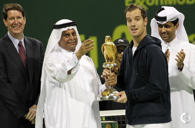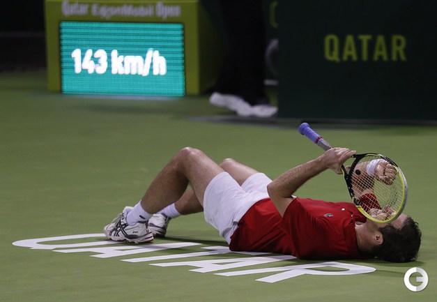 05.01.2013. Теннис. Доха (Катар). Мужской турнир Qatar ExxonMobil Open. Призовой фонд 1 054 270 долларов. Открытые корты, хард. Одиночный разряд. Финал. Гаске (Франция, 2) - ДАВЫДЕНКО (Россия) – 3:6, 7:6 (7:4), 6:3. Фото AFP, REUTERS