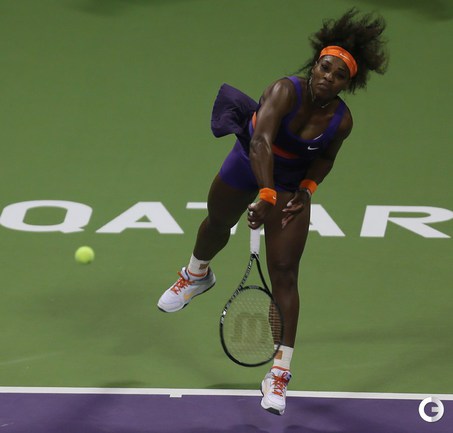 Теннис. Доха (Катар). Женский турнир Qatar Total Open. Призовой фонд 2 369 000 долларов. Открытые корты, хард. Одиночный разряд. Полуфинал. Россиянка Мария ШАРАПОВА в десятый раз подряд уступила американке Серене Уильямс. С.Уильямс (США, 2) - ШАРАПОВА (Россия, 3) - 6:3, 6:2. Фото AFP, REUTERS