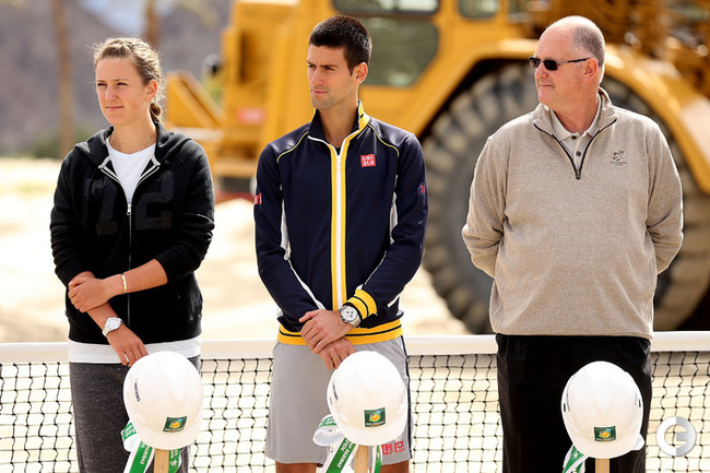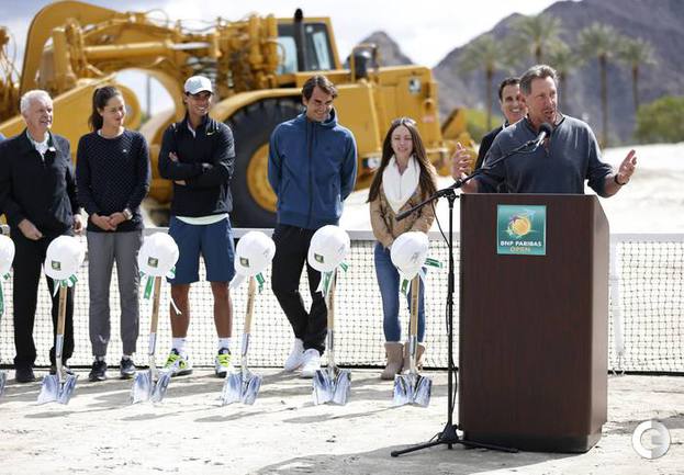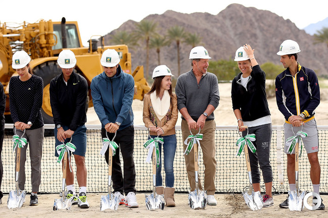 Звезды мирового тенниса - Ана Иванович, Рафаэль Надаль, Роджер Федерер, Виктория Азаренко и Новак Джокович - приняли участие в церемонии начала строительства нового стадиона на территории Indian Wells Tennis Garden. Фото AFP, REUTERS