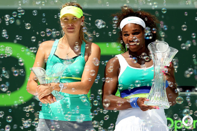 Майами (США). Женский турнир Sony Open Tennis. Призовой фонд 5 185 625 долларов. Открытые корты, хард. Одиночный разряд. Финал. С. Уильямс (США, 1) – Шарапова (Россия, 3) – 4:6, 6:3, 6:0. Мария Шарапова уступила Серене Уильямс в финале турнира в Майами. Россиянка взяла первый сет 6:4 и вела по ходу второго со счетом 3:2, однако затем проиграла десять геймов кряду. Фото AFP