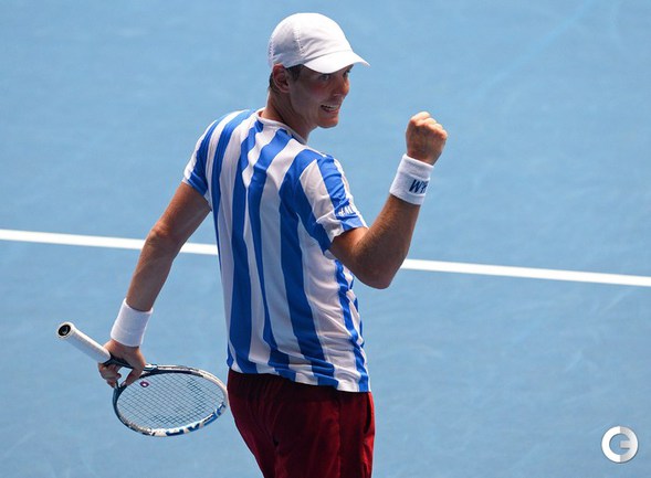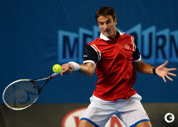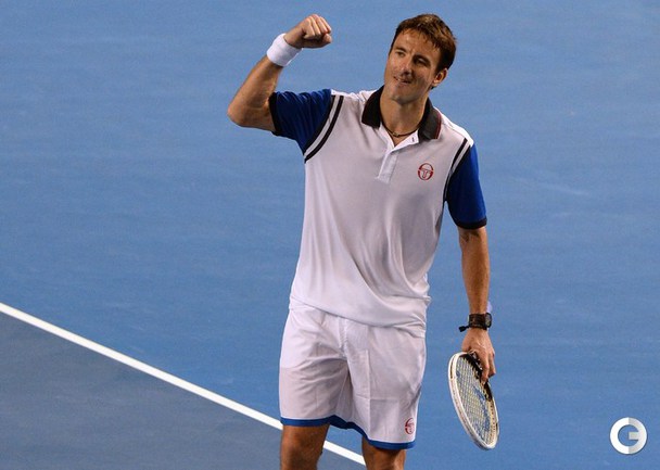 Теннис. Мельбурн. Турнир Australian Open. Общий призовой фонд 31 100 000 долларов. Открытые корты, хард. Мужчины. Одиночный разряд. Третий круг. Джокович (Сербия, 2) – Истомин (Узбекистан) – 6:3, 6:3, 7:5. Робредо (Испания, 17) – Гаске (Франция, 9) – 2:6, 7:5, 6:4, 7:6 (8:6). Фоньини (Италия, 15) – Керри (США) – 7:5, 6:4, 6:4. Андерсон (ЮАР, 19) – Роже-Васслен (Франция) – 3:6, 4:6, 6:3, 7:6 (7:5), 7:5. Бердых (Чехия, 7) – Джумхур (Босния и Герцеговина, Q) – 6:4, 6:2, 6:2. Фото AFP
