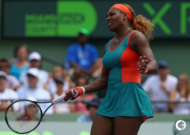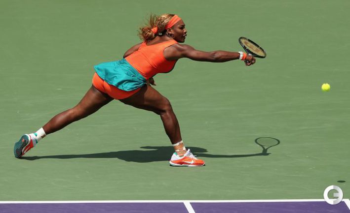 Майами (США). Женский турнир Sony Open Tennis. Призовой фонд 4 720 380 долларов. Открытый корт, хард. Одиночный разряд. Полуфинал. С. Уильямс (США, 1) – Шарапова (Россия, 4) – 6:4, 6:3. Мария Шарапова на протяжении десяти лет не знает побед над Сереной Уильямс Последний раз россиянка обыграла американку в 2004 году на итоговом турнира WTA. Фото AFP