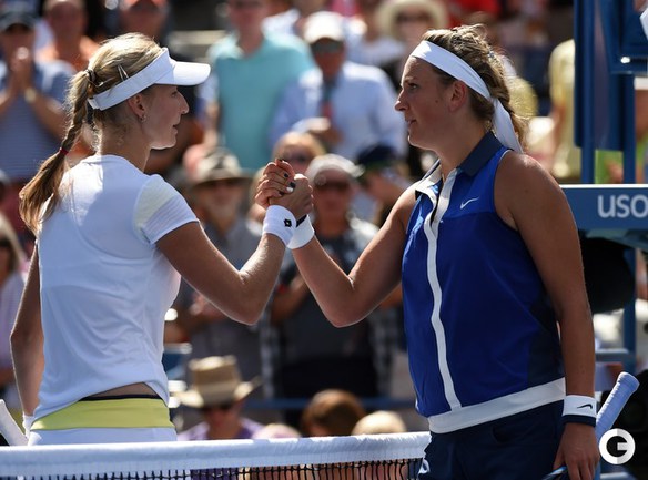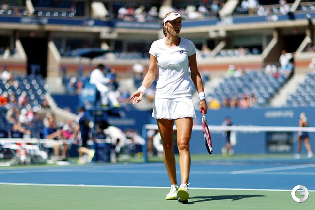 Теннис. Нью-Йорк. Турнир "Большого шлема" US Open. Общий призовой фонд 36 203 760 долларов. Открытые корты, хард. Женщины. Одиночный разряд. Четвертьфинал. МАКАРОВА (Россия, 17) – Азаренко (Белоруссия, 16) – 6:4, 6:2. Фото AFP