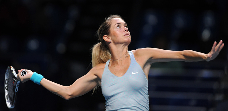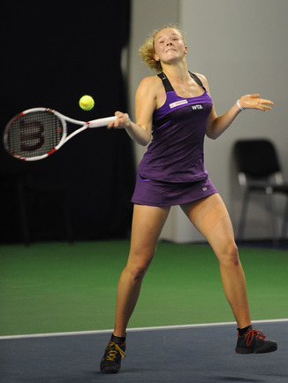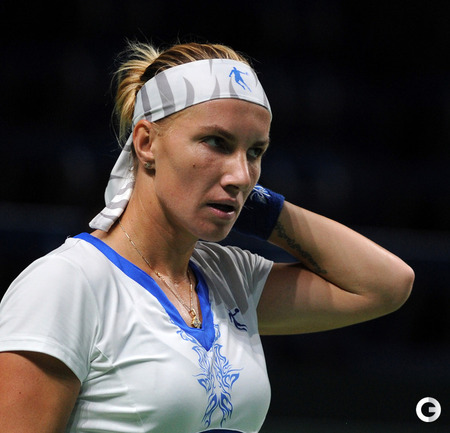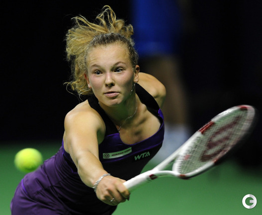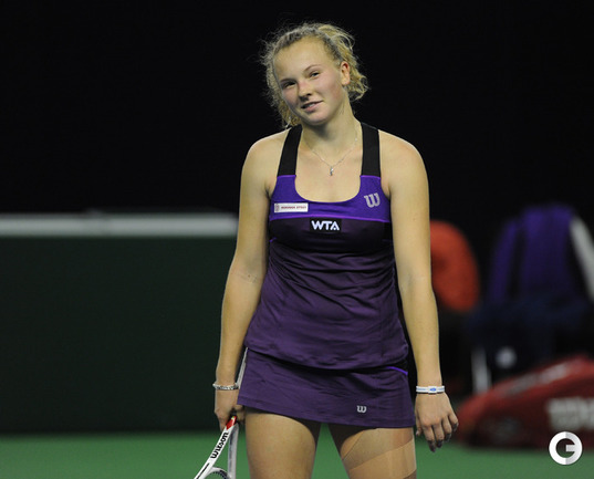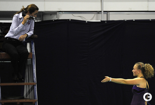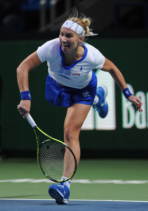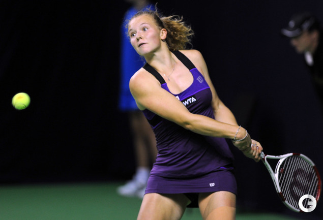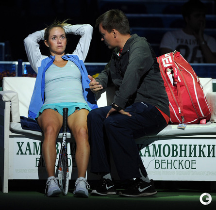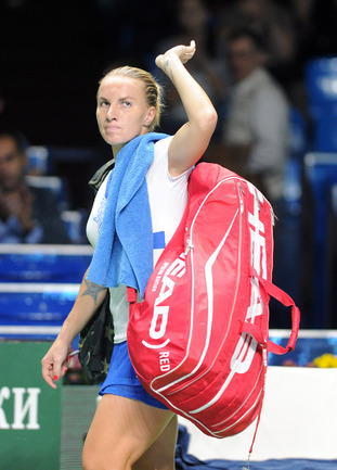 Москва. Турнир WTA "Кубок Кремля". Призовой фонд 710 000 долларов. Закрытые корты, хард. Одиночный разряд. Первый круг. Светлана Кузнецова (Россия, 5) - Коукалова (Чехия) - 6:1, отказ. Россиянка Светлана Кузнецова вышла во второй круг "Кубка Кремля". Ее соперница чешка Клара Коукалова отказалась от продолжения борьбы после проигранного первого сета (1:6). Фото - Никита Успенский, "СЭ"