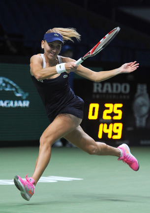 Россиянка Елена Веснина, не игравшая после победы на US Open в парном разряде из-за травмы плеча, уступила в первом круге "Кубка Кремля" "квалифаю" из Чехии Катерине Синяковой 2:6, 2:6. Фото - Никита Успенский, "СЭ"
