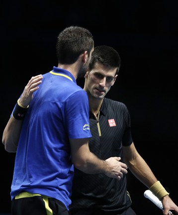 Лондон (Великобритания). Мужской итоговый турнир года Barclays ATP World Tour Finals. Призовой фонд 6 500 000 долларов. Закрытые корты, хард. Одиночный разряд. Группа А. Джокович (Сербия, 1) – Чилич (Хорватия, 8) – 6:1, 6:1. Фото AFP, REUTERS