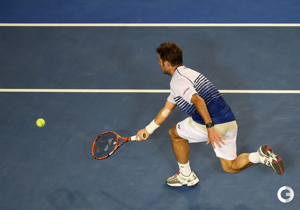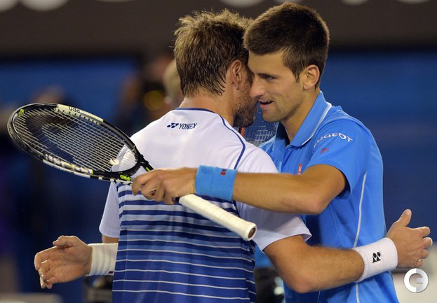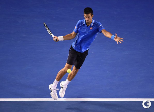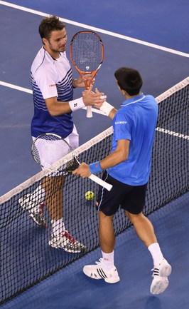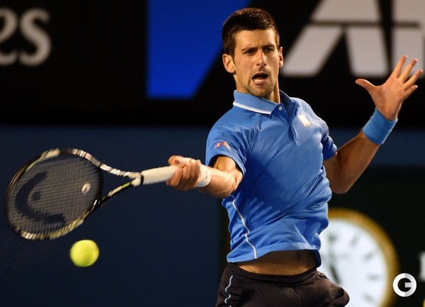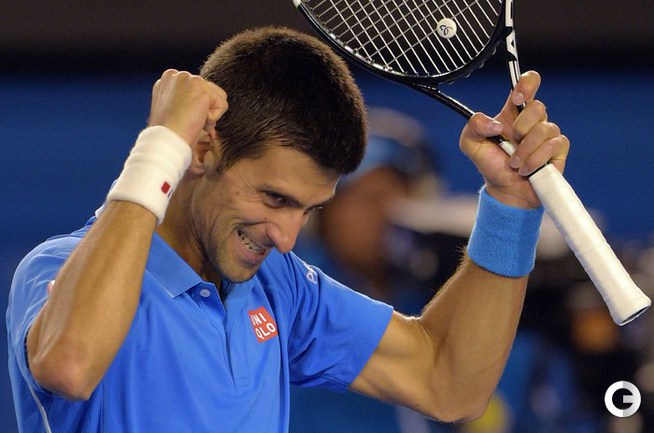 Мельбурн (Австралия). Турнир "Большого шлема" Australian Open. Общий призовой фонд 40 000 000 долларов. Открытые корты, хард. Мужчины. Одиночный разряд. Полуфинал. Джокович (Сербия, 1) – Вавринка (Швейцария, 4) – 7:6 (7:1), 3:6, 6:4, 4:6, 6:0. Фото AFP