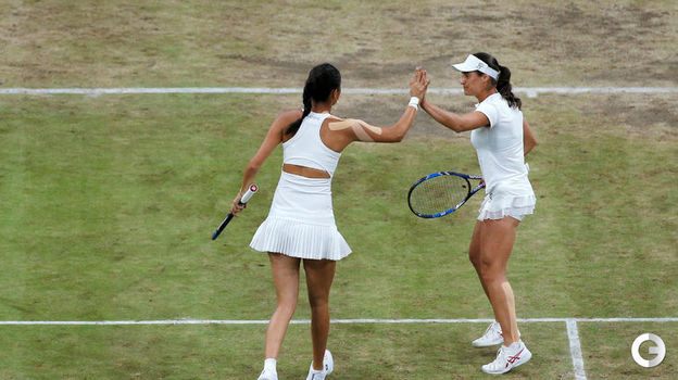 Россиянки Екатерина Макарова и Елена Веснина, разгромив в финале Чань Хаочэнь и Монику Никулеску(6:0, 6:0), впервые стали победительницами Уимблдона. Это их третья совместная победа на мэйджоре.