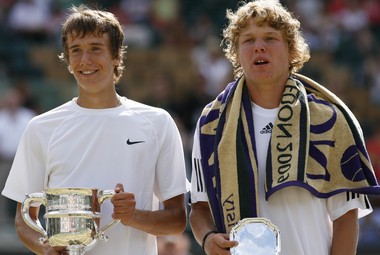 Далеко не каждому юниору на Уимблдоне везет так, как это вчера произошло с 18-летним балашихинцем Андреем Кузнецовым и 17-летним Джорданом Коксом, представителем американского штата Джорджия. Финалы юниорских состязаний здесь, как правило, проводятся на втором корте, поскольку не только главную арену турнира, но и корт №1 в последние дни чемпионата занимают взрослые. Однако на сей раз из-за отсутствия дождей The Championships четко проследовал по расписанию до самой последней станции, благодаря чему русскому шатену и американскому кудрявому блондину было доверено выяснить отношения именно на первом корте, способном вместить более 11 тысяч человек.