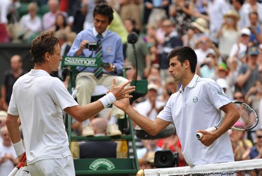 Там чех повел 6:2, но ни одного из четырех сетболов использовать не смог. После этого уже ему пришлось отыгрывать сетболы у разозленного одним из судейских решений соперника. Упорная борьба очко в очко продолжалось до тех пор, пока при счете 9:10 Джокович неожиданно не дал двойную. От злости на себя и несправедливость окружающей действительности серб сломал ракетку о предназначенный для отдыха стул.