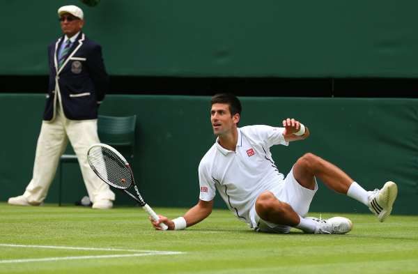 Без падений не обошлось и в мужской сетке турнира. Первому "сеяному" Новаку Джоковичу падения не помеха.
