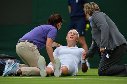 В результате неудачных падений Шараповой и Азаренко пришлось обратиться за медицинской помощью.