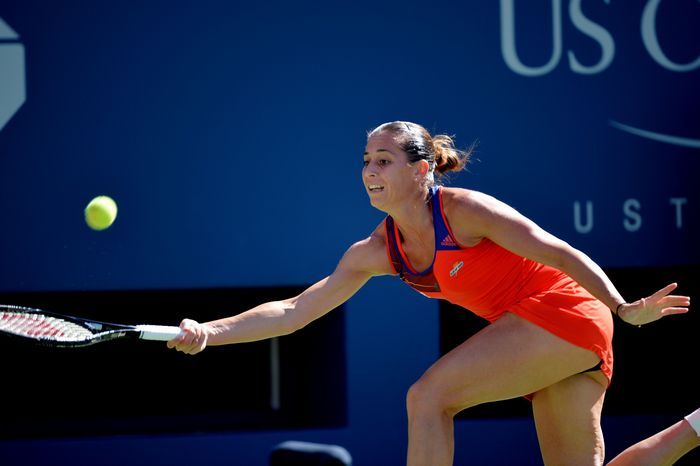 31 августа. Итальянка Камила Джорджи на приеме подачи от экс-первой ракетки мира Каролин Возняцки. Датчанка этот матч в трех сетах проиграет (4:6, 6:4, 3:6).